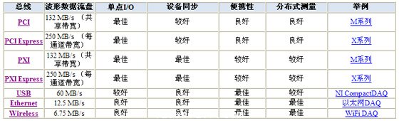 表1。該表展示了一份基于應用需求的總線選擇指南以及NI范例產(chǎn)品