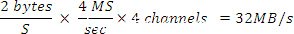 例如,一臺16-bit的設備(兩個字節(jié)),其四路通道的采樣率為4 MS/s,有: