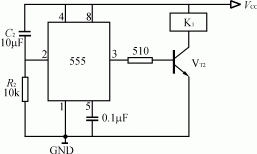 然而這種簡單的RC延遲電路在考慮到繼電器吸合電壓時還必須顧及流過線包的電流,一般電阻的阻值較小而電容的容量較大,延遲時間很難準確控制,這主要是電容容量的誤差和漏電流造成,需要仔細地挑選和測試。同時繼電器的動作閾值取決于電容器C2上的充電電壓,繼電器的動作電壓會抖動及振蕩,造成工作不可靠。