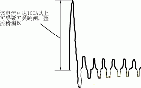 開關電源的輸入電路大都采用整流加電容濾波電路。在輸入電路合閘瞬間,由于電容器上的初始電壓為零會形成很大的瞬時沖擊電流(如圖1所示),特別是大功率開關電源,其輸入采用較大容量的濾波電容器,其沖擊電流可達100A以上。在電源接通瞬間如此大的沖擊電流幅值,往往會導致輸入熔斷器燒斷,有時甚至將合閘開關的觸點燒壞,輕者也會使空氣開關合不上閘,上述原因均會造成開關電源無法正常投入。為此幾乎所有的開關電源在其輸入電路設置防止沖擊電流的軟起動電路,以保證開關電源正常而可靠的運行。