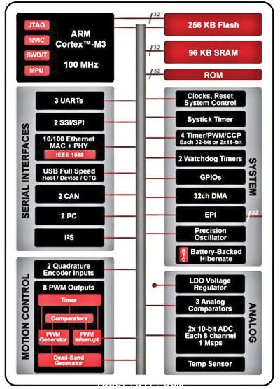 圖3:基于Cortex-M3的Stellaris 9000系列MCU提供了豐富的外設集合