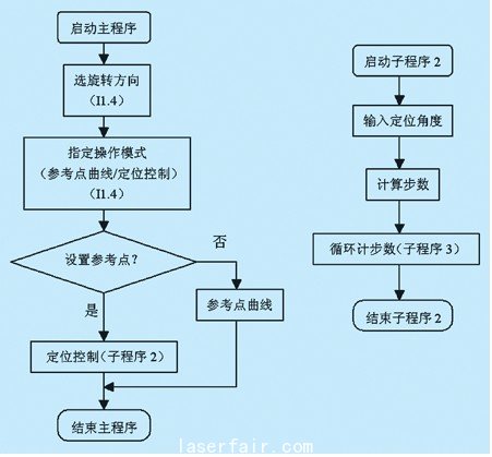 如果i1.4的開關已激活,而且“定位控制”也被激活(m0.3=1),則切換到“參考點曲線”參考點曲線。在子程序1中,將m0.3置成0,并取消“定位控制激活”的顯示(q1.0=0)。此外,控制還為輸出最大數量的控制脈沖做準備。當再次激活i1.4開關,便在兩個模式之間切換。如果此信號產生,同時電機在運轉,那么電機就自動停止。