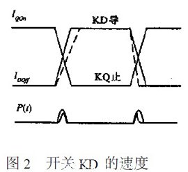 晶體管的開啟和關斷時間跟其截止頻率成反比。開啟、關斷時間越短,開關速度就越快。同時導通的持續時間取決于KQ和KD所使用的器件的開關速度。用速度不同的開關器件比較,開關器件的速度越快,同時導通的持續時間越短,尖峰干擾越是寬度窄、幅度大。