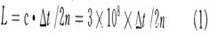 返回的有用信息由OTDR的探測器來測量,它們就作為被測光纖內不同位置上的時間或曲線片斷。根據發射信號到返回信號所用的時間,再確定光在石英物質中的速度,就可以計算出距離(光纖長度)L(單位:m),如式(1)所示。