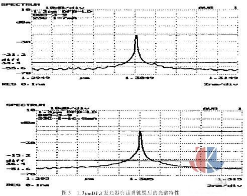 (1)對(duì)于處于雙模工作的DFB激光器,通過(guò)增加已鍍單層增透膜的厚度的方法,成功地改成單模工作;