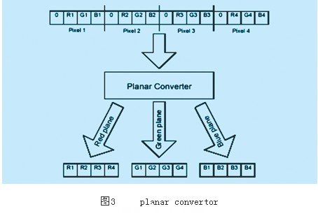 planar convertor能從以4位表示的彩色象素值中將r、g、b分量提取出來,然后在pci傳輸時分別送到主機內存中三個獨立的buffer中,這樣可以方便在后續的處理中對彩色信息的存取。在有些采集卡(如pc2vision)中,它也可用于在三個黑白相機同步采集時將它們各自的象素值存于主機中三個獨立的buffer中。