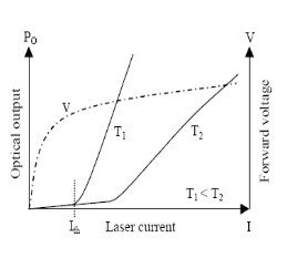 激光二極管(LD—Laser diode)是一個電流器件,只在它通過的正向電流超過閾值電流Ith (Threhold current) 時它發(fā)出激光。