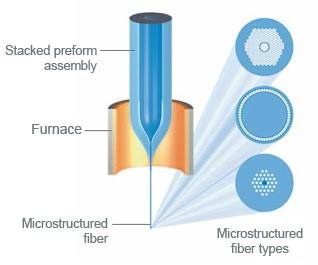 就結構而言,PCF可以分為實心光纖和空心光纖。實心光纖是將石英玻璃毛細管以周期性規律排列在石英玻璃棒周圍的光纖。空心光纖是將石英玻璃毛細管以周期性規律排列在石英玻璃管周圍的光纖。