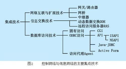 為方便討論問題、現舉例說明。根據某生產自動化改造工程要求,需要對系統進行組態監控操作平臺設計,采用組態軟件ifix2.2和windows應用軟件vb6.0,開發并實現基于dde機制的進程間數據交換,滿足工業控制網scada工控計算機內部信息交換需要,為各應用程序通過共享內存交換信息,實現控制網絡與信息網絡的集成,并為進一步進行windows程序間的數據交換開發提供有借鑒意義的參考[3]。控制網絡與信息網絡的主要集成技術如圖2所示。