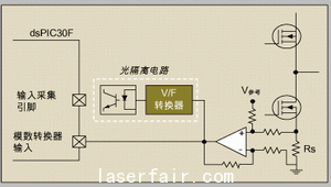 當控制器上有“輸入采集”引腳時,我們也可以在設計中加上隔離式模擬放大器,通過數字轉換來得到相電流。用V/F或者電壓/PWM轉換器把模擬信號轉換成數字信號。模擬信號可用數字式光耦合器通過隔離電路傳到控制器。與模擬隔離方案相比,V/F轉換器+光耦合器方案成本較低。