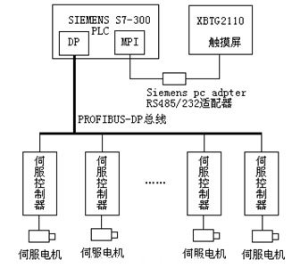 上位機由西門子的S7-300PLC組成,型號為6ES7315-2AG10-0AB0,它有一個專門的PROFIBUS-DP接口,一個MPI通信接口,可接入64個從站。PROFIBUS-DP總線負責對整個系統的中的所有伺服控制器進行管理,包括速度、力矩、位置等參數的命令傳送與設置等。作為一個窗口,由組態軟件ProTool編織的人機界面可方便的對整個控制系統進行監視和參數的修改。