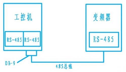 本系統所采用的通訊方式是利用美國ni公司的工控機與臺達vfd-b系列變頻器的rs-485串口通訊。工控機的控制器為nipxi-8106,自帶1個rs-232通訊串口。由于系統還需要與儀表和plc通訊,而且變頻器、儀表和plc三者之間的通訊協議不同,工控機另配有1塊串行通訊模塊nipxi-8431(含有兩個rs-485串口)。使用工控機rs-232串口和臺達變頻器的rs-485串口通訊,中間需加rs-232/rs-485轉換器,如圖1所示。如果使用串行通訊模塊nipxi-8431的rs-485串口,須用db-9連接器連接工控機的rs-485串口與變頻器的rs-485串口,如圖2所示