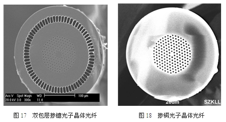 圖18為烽火通信研制的摻鉺光子晶體光纖,該光纖較常規摻鉺光纖具有更好的抗輻照特性,以及較好的增益特性。