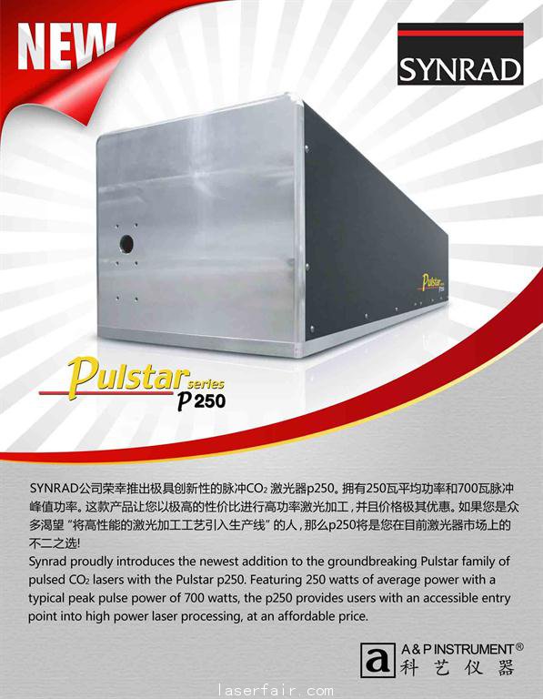 SYNRAD公司榮幸推出極具創新性的脈沖CO2激光器p250。擁有250瓦平均功率和700瓦脈沖峰值功率,這款產品讓您以極高的性價比進行高功率激光加工。