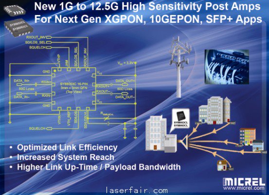 美國加利福尼亞州圣何塞消息―2013年7月22日―高性能模擬和高速混合信號、局域網以及時鐘管理和通信解決方案領域的行業領導者麥瑞半導體公司(Micrel Inc.) (納斯達克股票代碼:MCRL)今天推出了SY88053CL和SY88063CL限幅后置放大器。這兩款器件是支持擴建新一代無源光網絡(PON)的光纖到戶(FTTH)XGPON和10GEPON光線路終端(OLT)應用的理想產品。該產品系列還適用于支持多速率應用的光纖收發器模塊,最高速率可達12.5Gbps,支持以太網、光纖通道、光傳輸網絡(OTN)和CPRI/OBSAI數據速率。用戶可聯系麥瑞半導體現場銷售和支持人員,或登陸 www.micrel.com ,獲取產品樣品和價格信息。