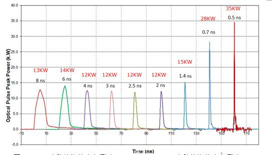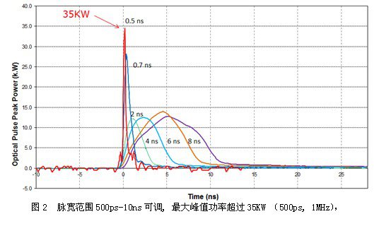 圖2 脈寬范圍500ps-10ns可調, 最大峰值功率超過35KW (500ps, 1MHz)