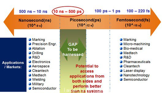 圖4 在激光脈沖寬度家族中,1ns -500ps 脈沖寬度急需開發。