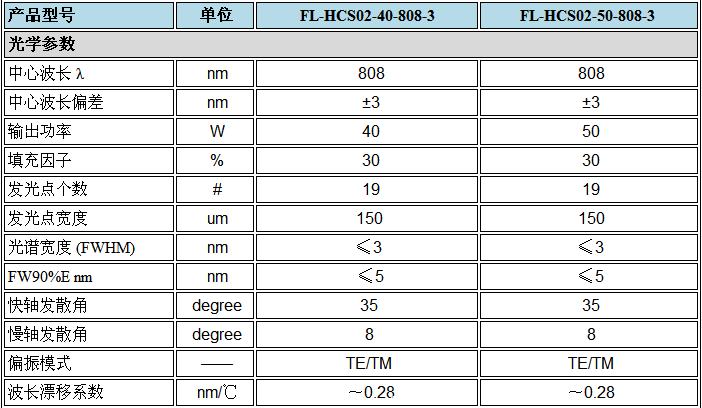 2013年7月,西安炬光科技有限公司宣布推出硬焊料傳導冷卻半導體激光器單Bar HCS02系列(連續)新品。該系列新品目前包括兩個型號的產品,分別為FL-HCS02-50(W)-808(nm)-3和FL-HCS02-40(W)-808(nm)-3。