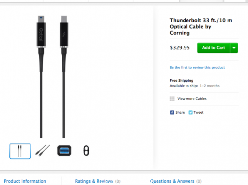 康寧Thunderbolt光纖開賣 售價高達330美元
