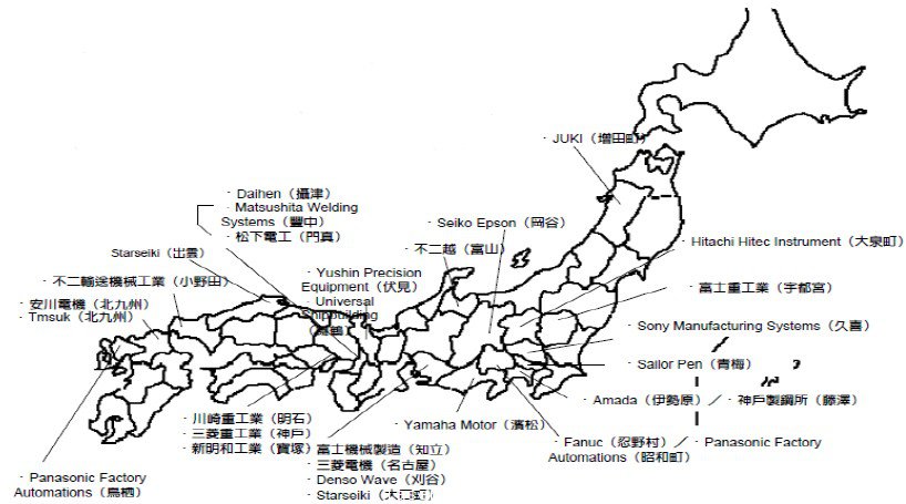 圖1:日本主要機(jī)器人生產(chǎn)商的地理位置分布圖