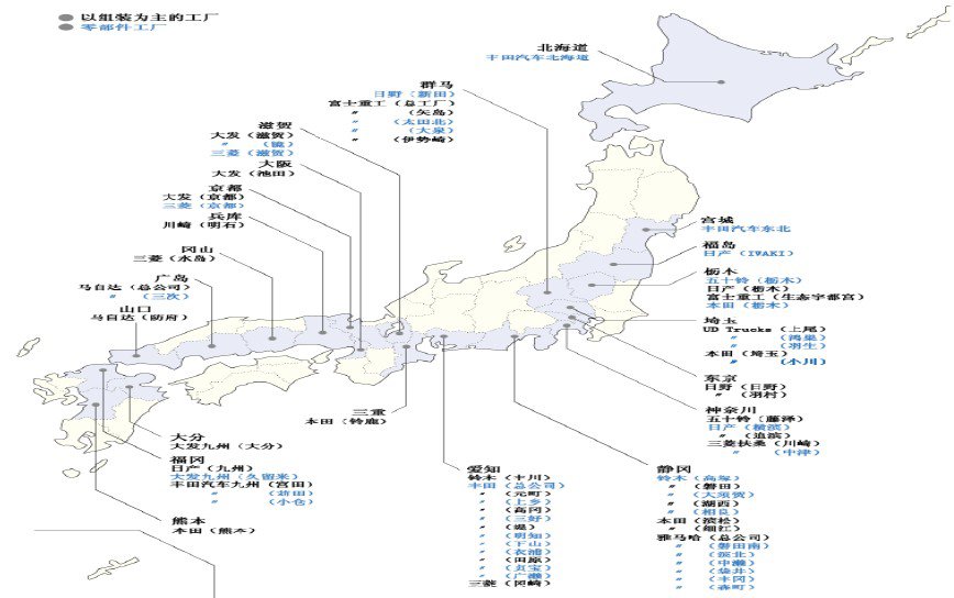 圖2:日本主要汽車生產(chǎn)商的地理位置分布圖