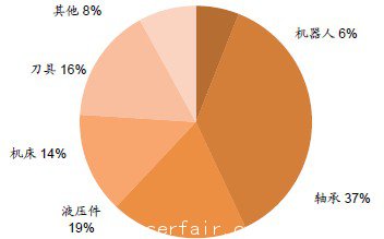 機(jī)器人,控制器、傳感器、減速機(jī)、伺服電機(jī)、數(shù)控系統(tǒng)等關(guān)鍵零部件,占單體機(jī)器人成本的70%以上,發(fā)那科(Fanuc)、安川電機(jī)(Yaskawa)和不二越(Nachi)等全球領(lǐng)先的日本機(jī)器人生產(chǎn)企業(yè)都具備關(guān)鍵零部件生產(chǎn)能力。2011年,發(fā)那科40%收入為數(shù)控系統(tǒng)(發(fā)那科數(shù)控系統(tǒng)全球排名第一),機(jī)器人收入占比只在24%;安川電機(jī)機(jī)器人收入占比33%,控制器占49%;不二越機(jī)器人收入只占6%,其他為軸承、液壓件和刀具等關(guān)鍵零部件。