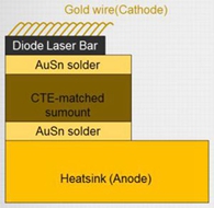 中國,西安,2014年6月19日 - 2014年6月,西安炬光科技有限公司宣布推出全金錫焊料封裝傳導冷卻半導體激光器單Bar HCS02系列新品。該系列新品的封裝技術不僅在submount與bar條之間采用金錫焊料,且在submount與heatsink之間也采用金錫焊料,真正實現了半導體激光器的全金錫焊料封裝,產品結構如圖1所示。該系列新品目前包括幾個類別的產品,分別為FL-HCS02-50(W)-808(nm),FL-HCS02-50(W)-825(nm),FL-HCS02-250(W)-808(nm)(QCW)和FL-HCS02-60(W)-9xx(nm)。