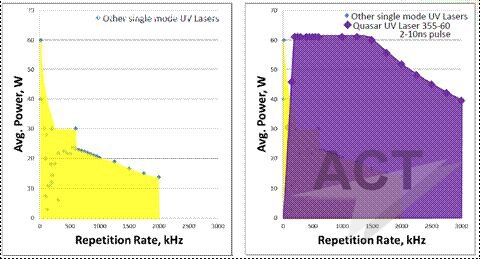 圖2:傳統DPSS調Q紫外激光器和Quasar可實現的參數范圍