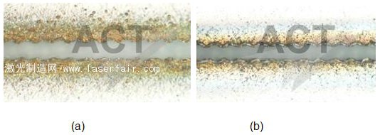 圖6:劃片深度為4mm的氧化鋁劃片質量對比。(a)采用單脈沖的頂視圖。(b)采用雙脈沖的頂視圖。