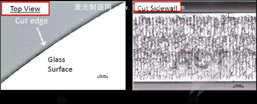 在Spectra-Physics公司的應用實驗室中,工程師已經利用Quasar激光器的TimeShift技術所創建的激光與材料之間的相互作用效應,開發出了玻璃加工工藝。利用Spectra-Physics公司應用實驗室正在申請專利的加工過程,獨特的激光脈沖減少了熱負荷、以及材料中可能出現的碎屑或裂紋。在使用Quasar紫外激光器以超過1.0m/s的直線速度切割康寧Gorilla®、旭硝子Dragontail™和肖特Xensation®等一些化學強化玻璃時,均獲得了較高的切割質量。在切割鈉鈣玻璃以及康寧 Willow®等先進的柔性玻璃時,也獲得了類似的高切割質量;目前工程師正在進行切割藍寶石的工藝開發工作。圖8顯示了切割0.7mm厚的Gorilla玻璃所獲得的切割效果,該玻璃具有40mm深的化學強化層(DOL)。俯視圖顯示了干凈的切割邊緣,具有最小的切割碎屑,并且沒有明顯的微裂紋產生。從切割邊緣的側面圖中可以看到,其切割粗糙度位于典型制造要求所能接受的范圍之內。