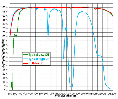 如圖所示,新FBPI光纖展示了UV中高- OH光纖和NIR中低-OH光纖的最佳性能