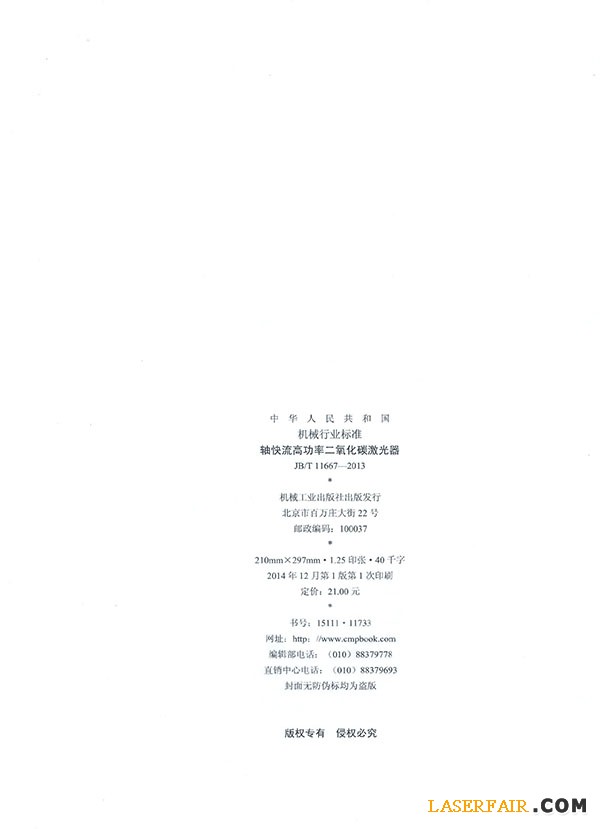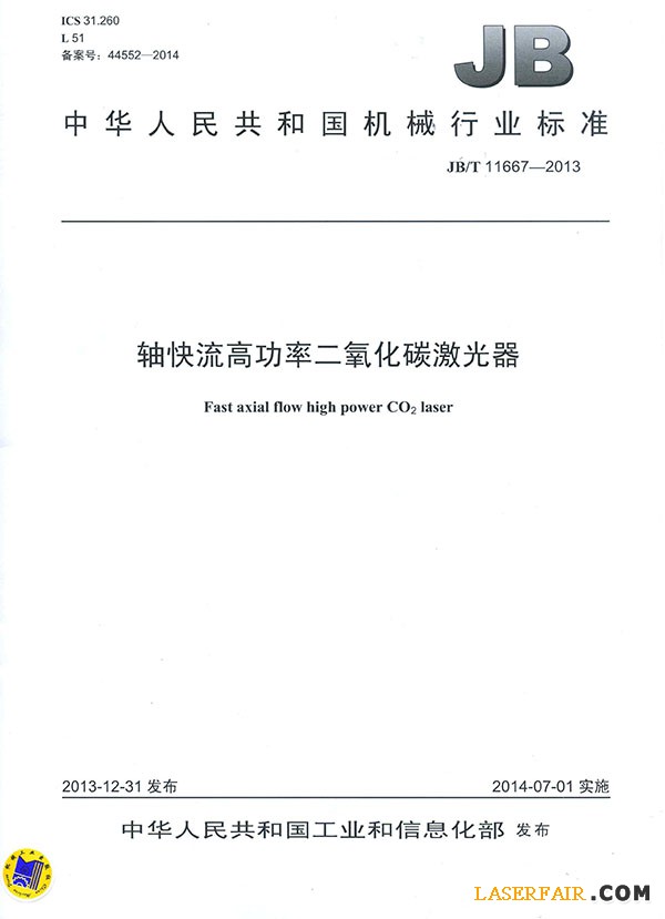 日前,由南京東方激光有限公司起草的《軸快流高功率二氧化碳激光器》通過了國家工業(yè)和信息化部審核,正式發(fā)布成為國家機械行業(yè)
