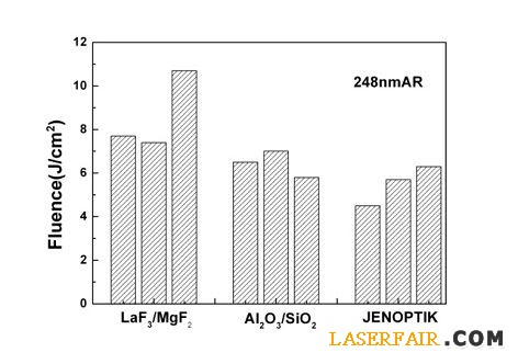 圖2. 248nm增透膜的損傷閾值對比測試結果