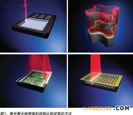 激光聚合物焊接是一種無振動、非接觸且非常精確的焊接塑料部件的方式。如今,激光透射焊接有四種較為成熟的方法(圖1)。在輪廓焊接中,一束激光投射到待焊接工件上,接著激光束沿著待焊接區域的輪廓掃描一周,兩個夾緊的塑料部件上被掃描的區域由此被融化并連接在一起。在準同步焊接中,兩個掃描鏡以非常高的速度沿著輪廓多次偏轉激光光斑。在這種方法中,整個圖案的加熱和連接幾乎是同步完成的。在同步焊接中,完全相同形狀的圖案輪廓被激光光束融化并同時連接。在掩膜焊接中,線狀的激光束穿過反射掩膜,掩膜的陰影區下方是不需要連接的區域。