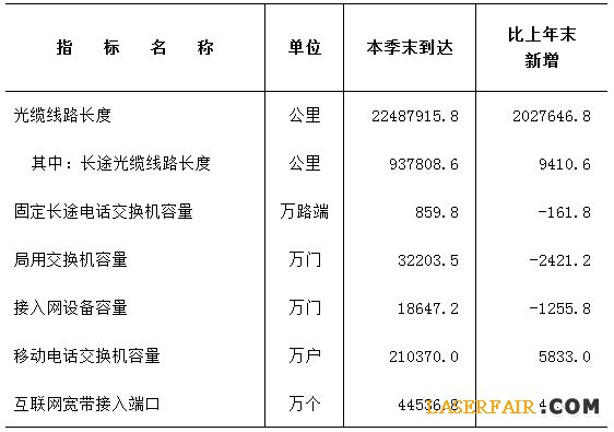 2015年第二季度通信業(yè)主要通信能力