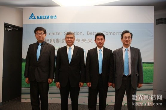 ▲臺達集團-中達電通副董事長尹鏇博先生、臺達董事長海英俊先生、執行長鄭平先生、資深副總裁暨機電事業群總經理張訓海先生