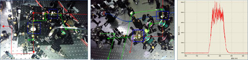 整個壓縮器放置在直徑2.24m,長度4.8m的真空室內(nèi),啁啾脈沖壓縮之后輸出到靶面上的凈脈沖能量大于23J,實(shí)現(xiàn)了1PW的到靶脈沖能量輸出。下一步課題組將對全系統(tǒng)的光束質(zhì)量、穩(wěn)定性、靶室聚焦單元等做進(jìn)一步的提高和完善,預(yù)計(jì)近期可實(shí)現(xiàn)整個激光系統(tǒng)數(shù)PW功率的穩(wěn)定運(yùn)行輸出。未來神光II激光裝置將會逐步發(fā)展成為國內(nèi)高功率激光方面的開放物理實(shí)驗(yàn)平臺,數(shù)PW激光系統(tǒng)建成后,使神光II裝置具有了提供1022-23W/cm2可聚焦峰值功率的輸出能力,不但提升了強(qiáng)場物理實(shí)驗(yàn)方面的能力,同時配合神光II原來的多種脈寬(1-10ps、35ps、100ps、1ns、3ns和5ns)輸出,也大大提高了神光II激光裝置在物理實(shí)驗(yàn)方面的靈活性和多樣性。