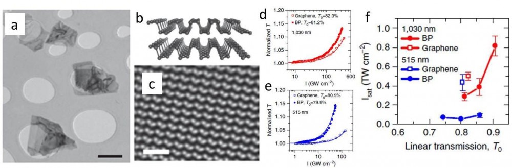 圖4 黑磷高分辨TEM及飽和吸收特性