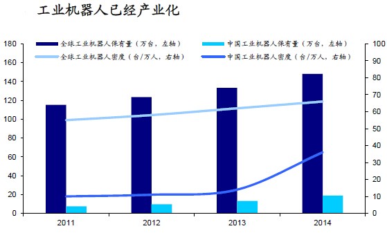 勞動力成本的上升,讓機器取代人成為一種必然趨勢。據統計,中國制造業從業人員平均工資由2003年的12671元上升至2014年的51369元,增幅達到305.41%,教育從業人員工資由2003年的14189元上升至2014年的56580元,增幅達到298.73%。僅十年的時間,中國勞動力成本上升了3倍多,中國的人口紅利逐漸減少,放眼全球,歐美等發達國家早就已經開始了機器取代人的產業化歷程,預計未來傳統工業服務及新興產業發展過程中,機器取代人會成為必然趨勢,助推服務機器人成熟產業化進程。