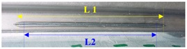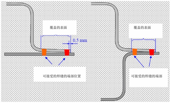 激光熔焊最小直線段焊縫長度為25mm,有效焊縫長度為實現焊縫長度減去兩端頭各2.5mm的超始、收弧處的過渡焊縫長度。