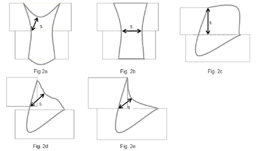 l≤0.2h,且不大于2mm;其中h=h1+h2(焊縫有效厚度近似于兩疊焊試板厚度之和) f≤0.5% |
