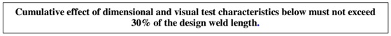 在表格中,如果規則中的一條沒有滿足,那么焊縫或者焊縫的一部分就會被認定為不合格。