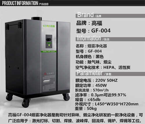 *煙霧過濾一體化結構設計,安裝簡便,移動靈活,無需鋪設吸煙管道。