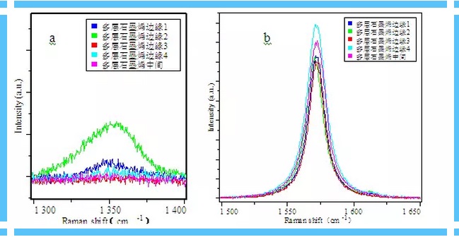多層石墨烯中心、邊緣區域拉曼光譜圖