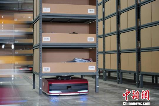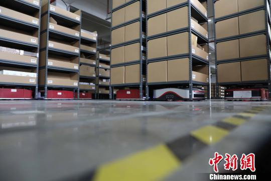 中新網廣州6月5日電 (記者 許青青)每到電商促銷季,快遞“爆倉”都是熱門話題。記者5日從廣州市黃埔區狀元谷電子商務園區內的京東物流倉獲悉,一款名叫“地狼”的搬運機器人將揀貨效率提高了5倍,大大緩解了快遞“爆倉”幾率。