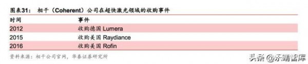 2010年以來,各激光行業(yè)龍頭爭先收購了具有超快激光技術的中小型公司和科研機構,完善了超快激光的制造技術,制造成本也有所降低,超快激光開始走向市場。激光行業(yè)龍頭通過不斷并購和持續(xù)研發(fā)的雙驅動模式,成功把握了超快激光市場的主導權。