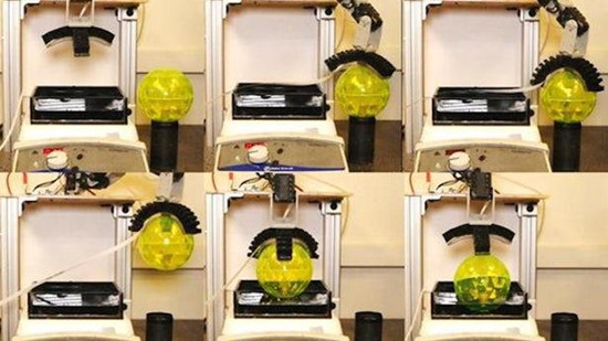然后,附有該生物傳感模塊的機器人抓手能夠將該光“詮釋”為控制信號,在這種情況下,該控制信號用于確定是否應該抓取某些東西并將其放入水中。在花了幾個小時在水中休息以檢查IPTG之后,機器人手臂能夠確定它是安全的并且將一個大的黃色球放入浴盆中。
