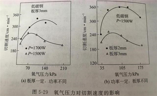 當(dāng)板厚一定時(shí),存在一個(gè)zui佳氧氣壓力,使切割速度zui大;當(dāng)激光功率一定時(shí),切割氧氣壓力的zui佳值,隨板厚的增加而減小。