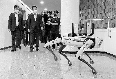 波士頓動力公司的機器狗17日在韓國仁川市政府做性能展示。