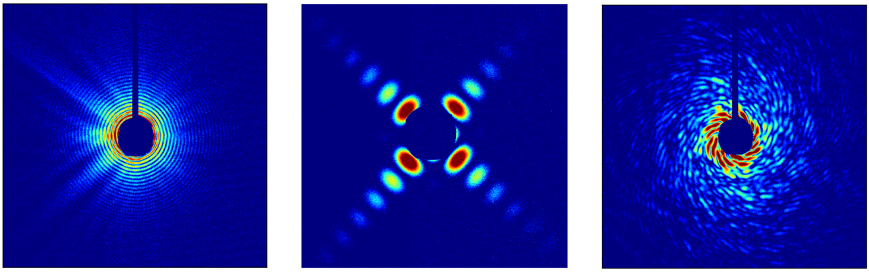 標(biāo)準(zhǔn)樣品圓孔、方孔及鸚鵡螺圖案的相干衍射圖樣,圖源:上海科技大學(xué)網(wǎng)站